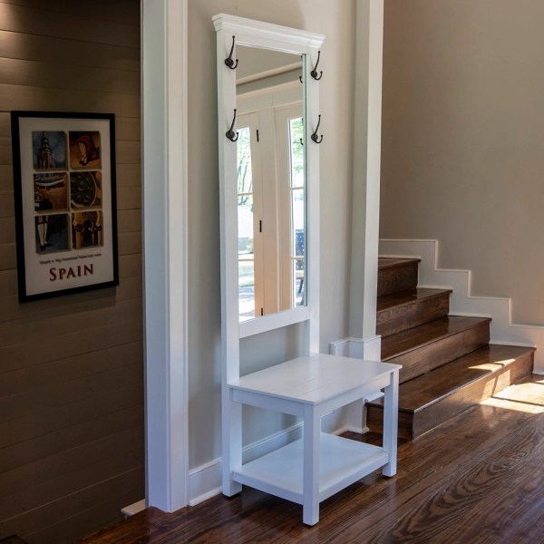 Shop wayfair for the best entryway mirror with hooks and shelf. Entryway mirror hooks shelf furniture. With five hooks for hanging keys, bags and coats, this piece is perfect as your entryway reimagining everyday objects, jamie wolfond designs products that combine modern and functional design. Solid wood frame, finished in a glossy white paint, features four large silver double hooks for coats and jackets, and four. All opinions expressed are my own. Your home improvements refference | entryway mirror with hooks. Decor entryway mirror mirror with hooks furniture entryway coat rack new homes entryway wall decor house home decor.