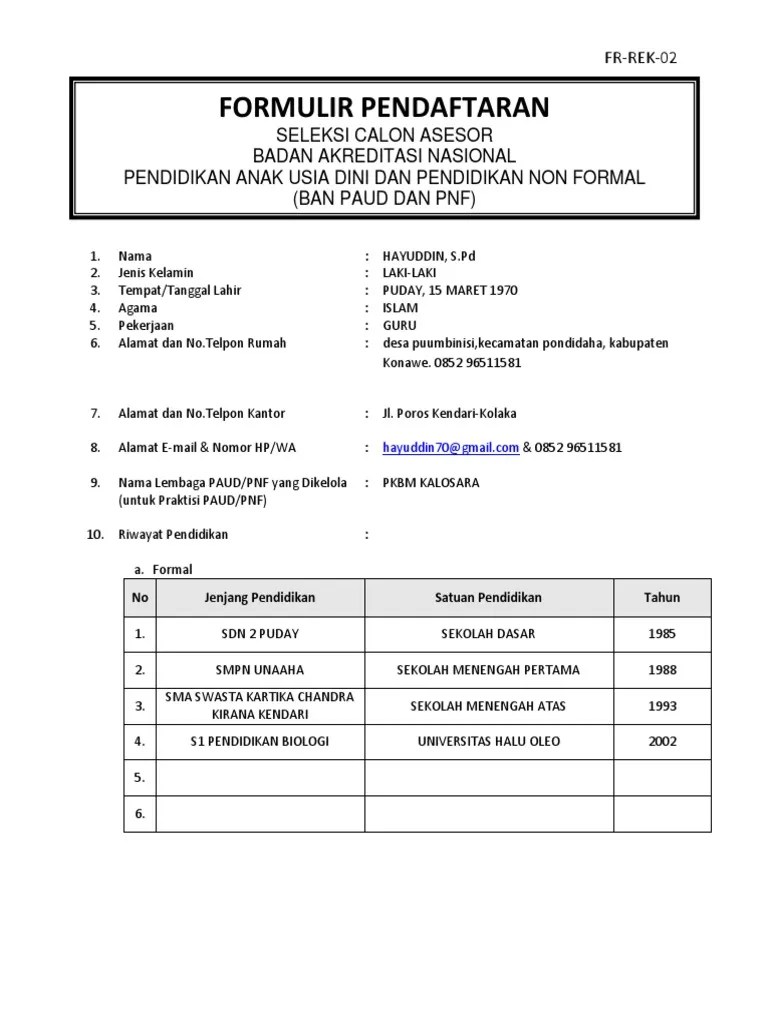 Download formulir pendaftaran (apl 01 & apl 02). 100%(1)100% found this document useful (1 vote). Preview contoh formulir pendaftaran anak didik paud.